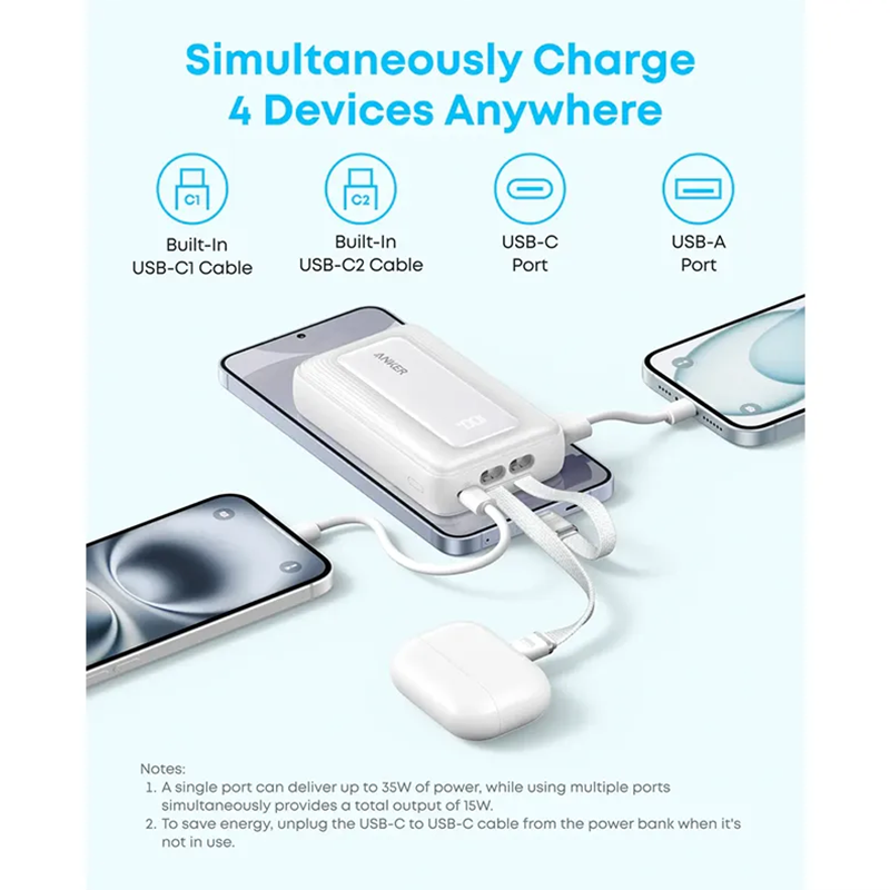 Anker – Zolo Power Bank 10K 35W + 2 USB-C Cables – White