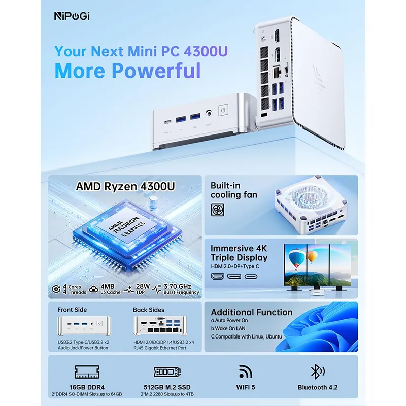 NipoGi – P2 Mini PC Ryzen 3 4300U 16GB 512GB – Silver