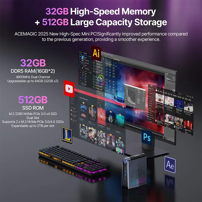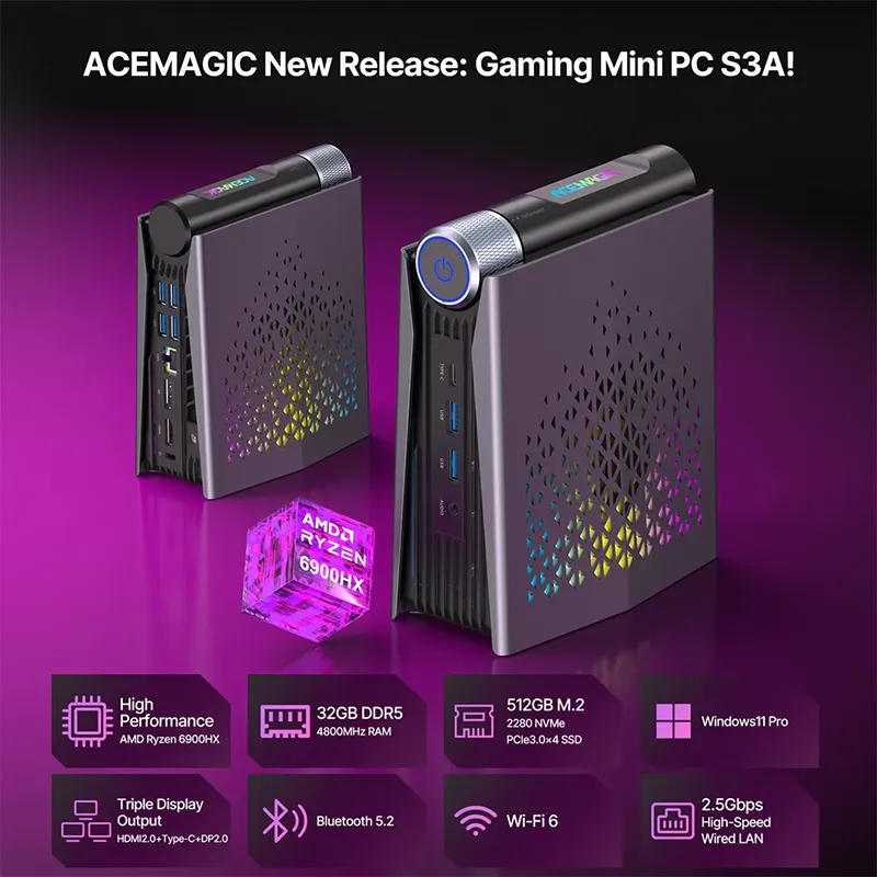 ACEMAGIC – S3A Ryzen 7 8745HS 32GB RAM 1TB SSD Mini PC – Black